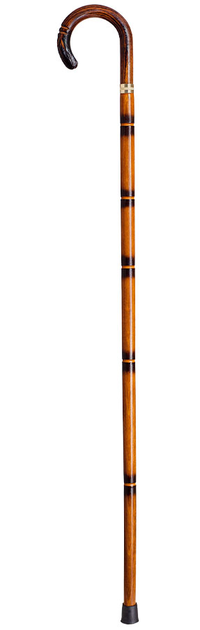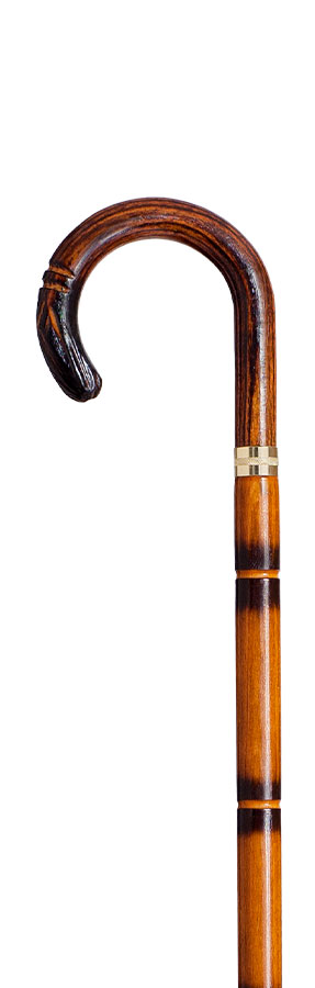 Bastón porra labrada de madera de haya, con grabado artesanal y acabado oscuro. Ideal para apoyo y colección.
